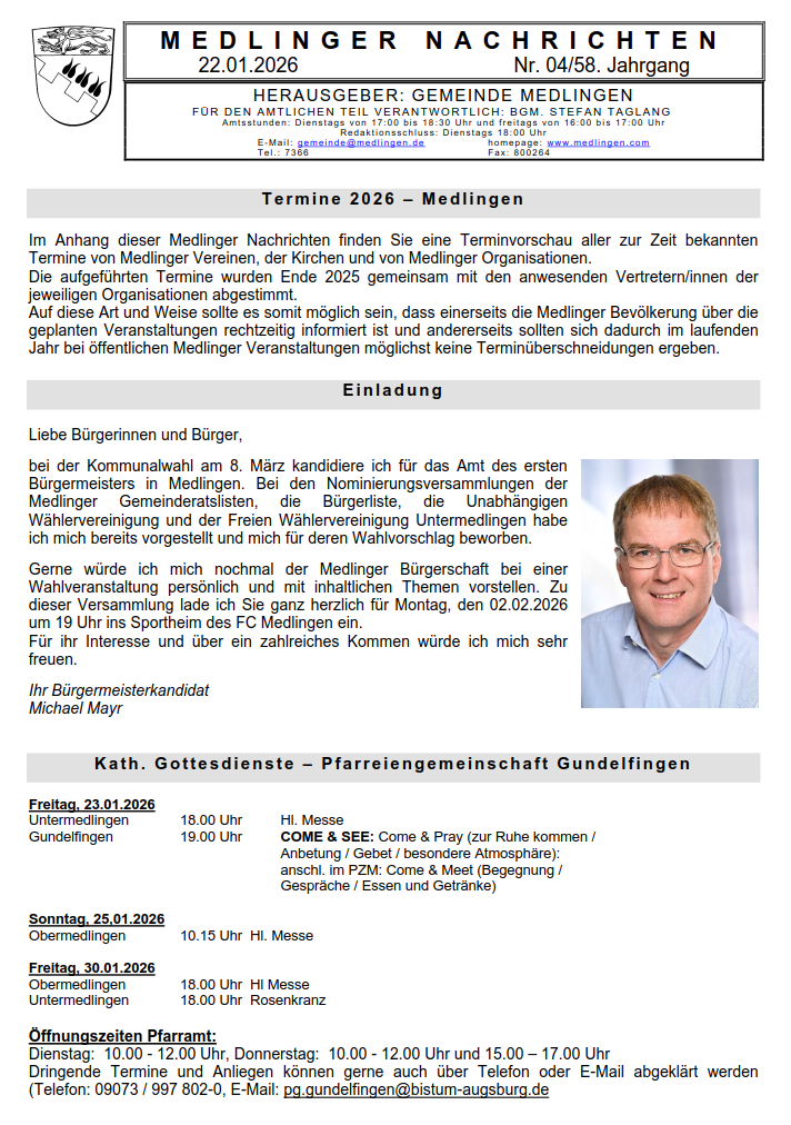 Medlinger Nachrichten KW 04 – 22.01.2026