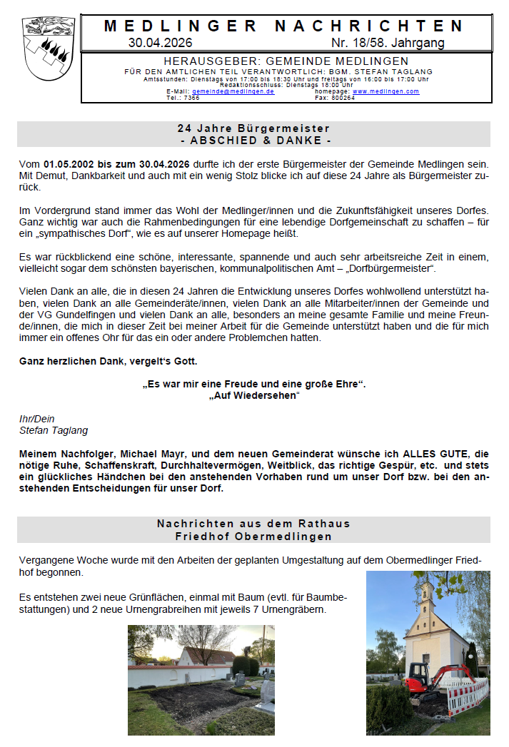 Medlinger Nachrichten KW 18 – 30.04.2026