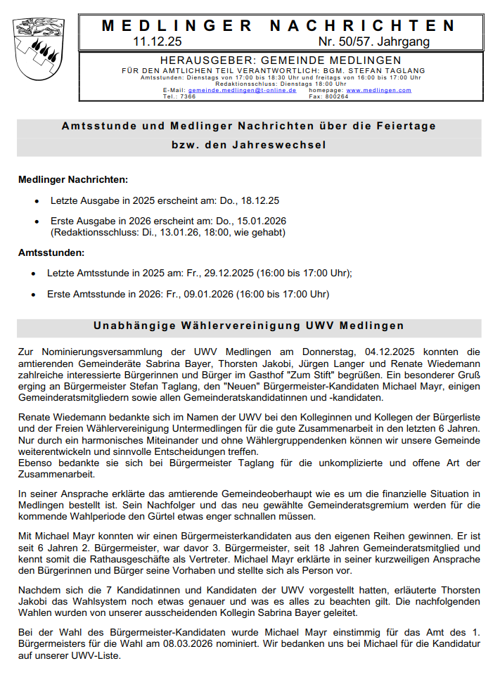 Medlinger Nachrichten KW 50 – 11.12.2025